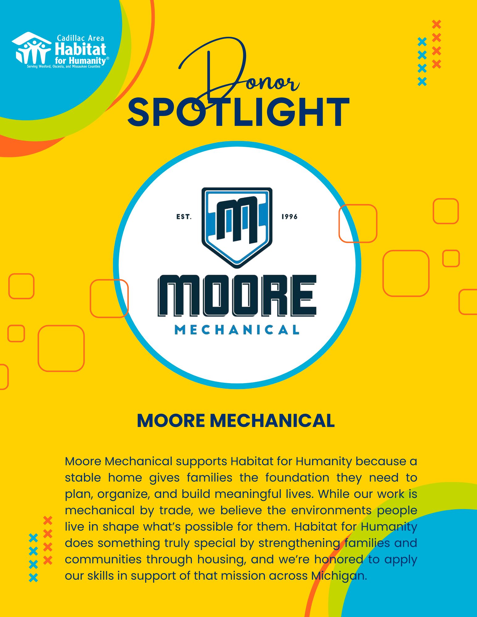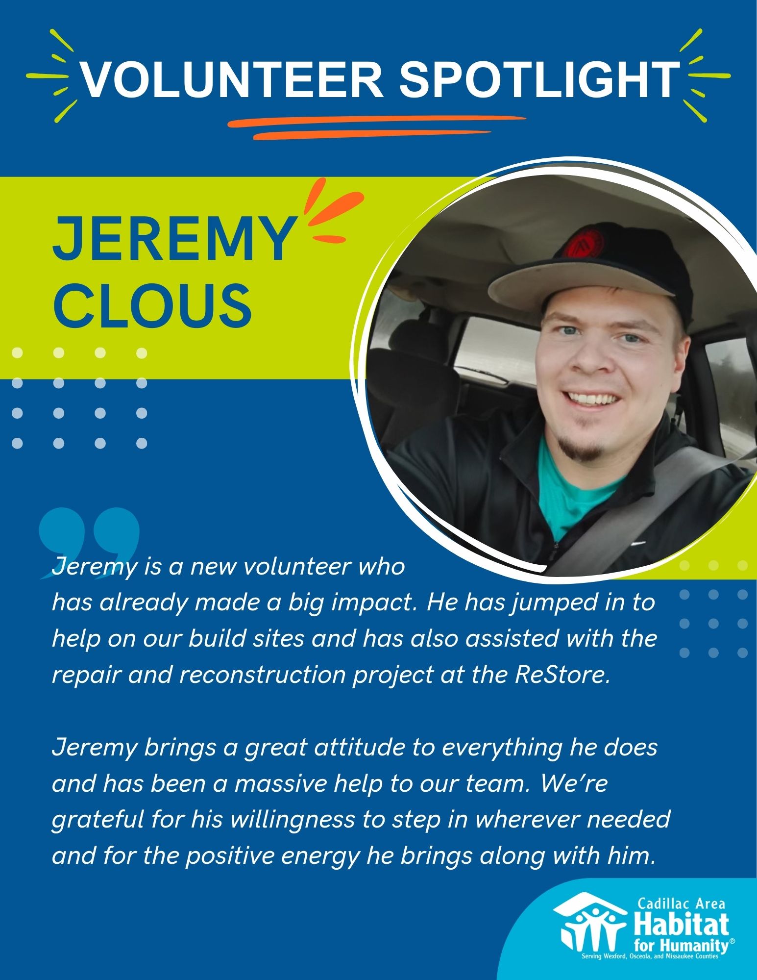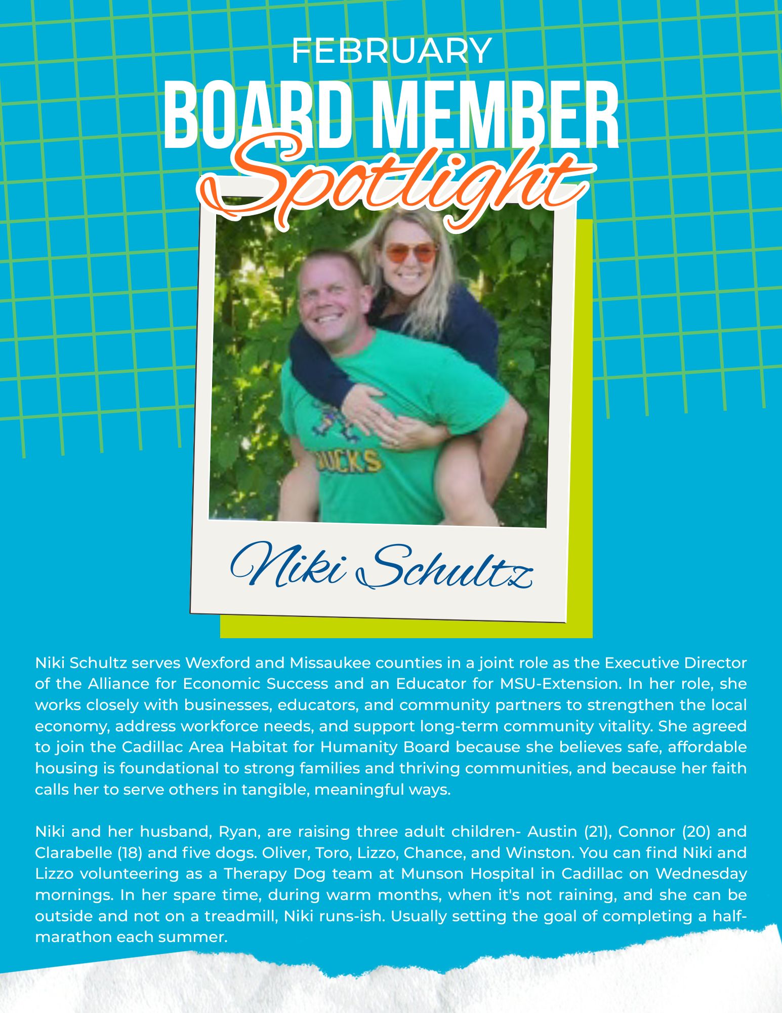 I am continually inspired by the generosity of our volunteers, donors, and community partners. Whether you give your time, financial support, or simply help spread the word about our mission, you are part of every success story. Affordable housing is a community effort, and Wexford, Missaukee and Osceola Counties continue to show up again and again.