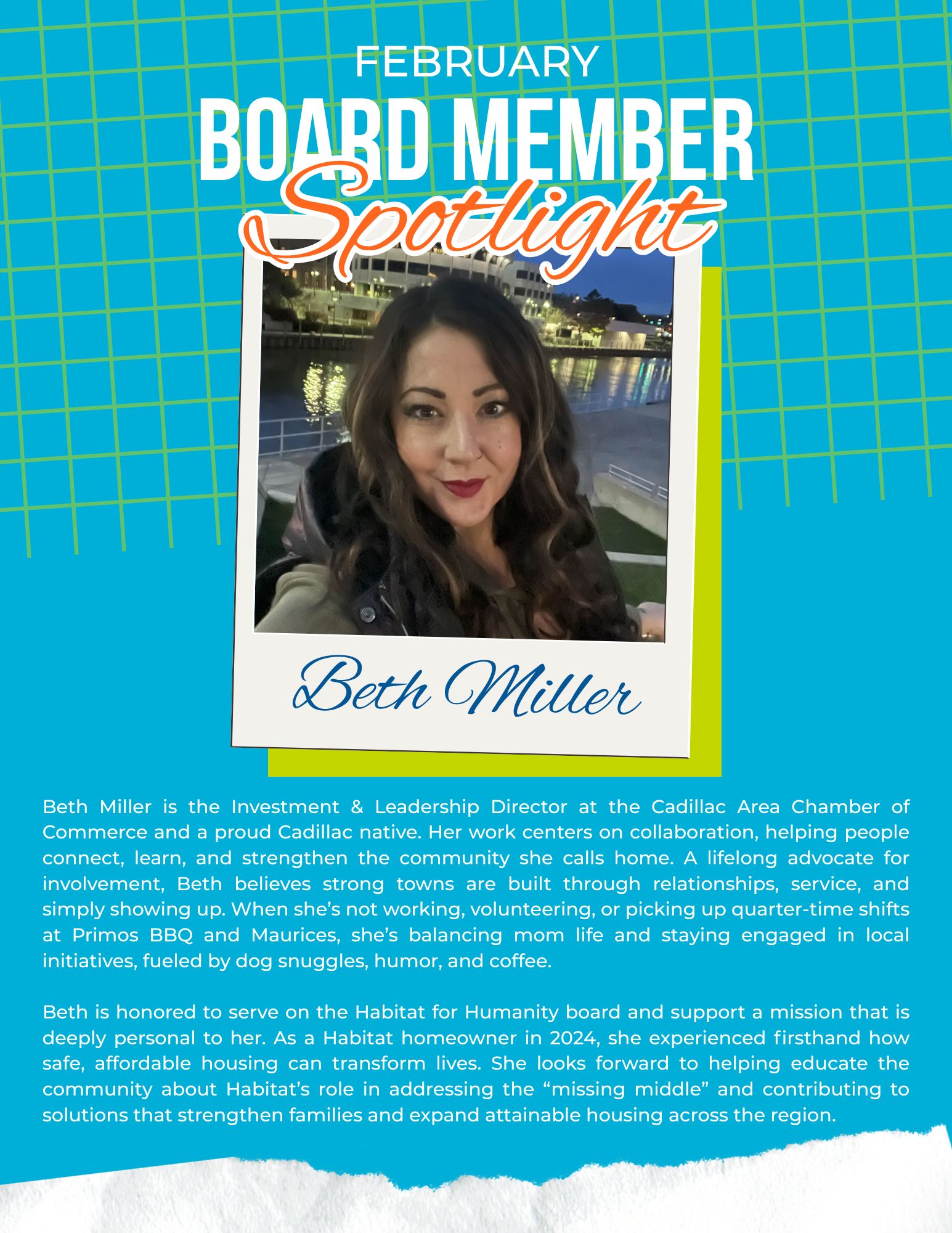 As we look toward spring, we are excited about the opportunities ahead, more families served, more homes made safer, and more lives changed through affordable housing. Thank you for being part of this work and for believing, as we do, that everyone deserves a decent place to live. With gratitude, Amy Gibbs Executive Director Cadillac Area Habitat for Humanity