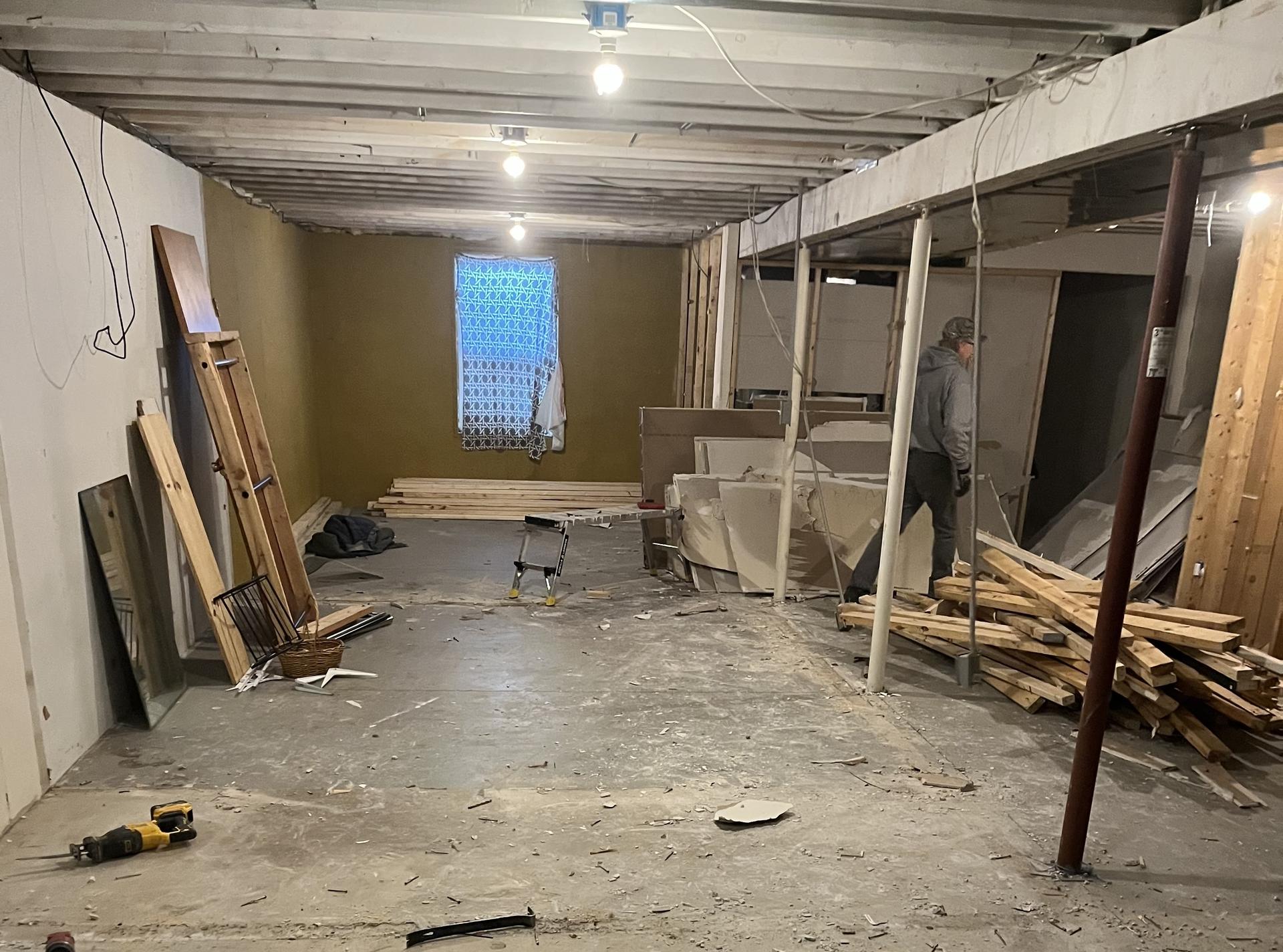 Walnut Remodel: Basement bedroom walls torn out and rebuilt. New drywall installation and repairs pending. Old flooring, cabinets, doors, trim, and lighting will be updated for a fresh new look & feel. Evan Stieg Construction Manager Cadillac Area Habitat for Humanity |